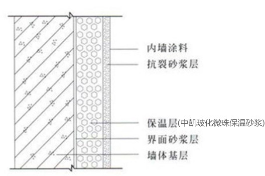 中凱?;⒅楸厣皾{作為內(nèi)墻保溫,施工便利,墻面平整度高,粘接性強(qiáng)不變形,保溫效果好,同時(shí)由于玻化微珠的中空特性,具有良好的室內(nèi)有害氣體吸附性,綠色環(huán)保,是內(nèi)墻保溫的首選產(chǎn)品。